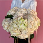 Великолепный и умиротворяющий букет кремово-белых гортензий, образующих пышные, словно облака, соцветия. Эта композиция — прекрасный символ чистоты, гармонии и элегантности — изысканный подарок на годовщину или изящный жест признательности, идеально подходящий для изысканных торжеств или значимых моментов.