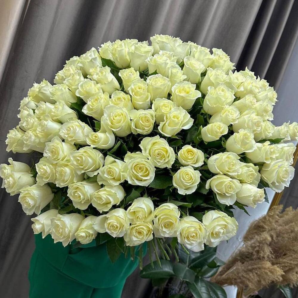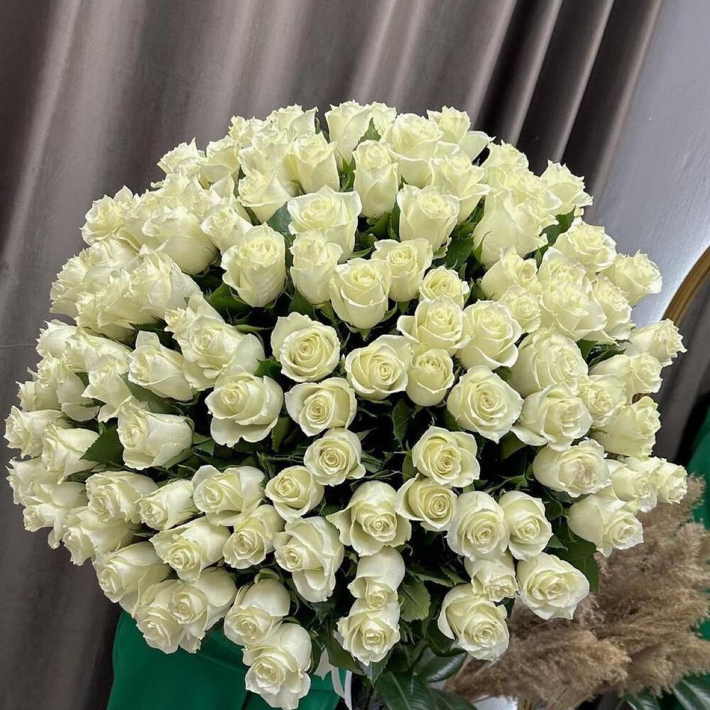Satin ribbon - 2 шт. chrysal - 1 шт. card - 1 шт. instruction - 1 шт. white roses - 101 шт. carrying box - 1 шт.