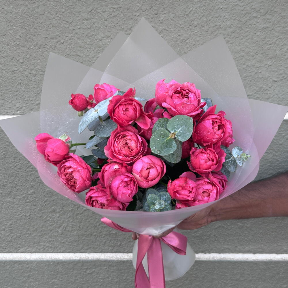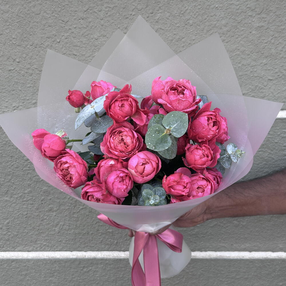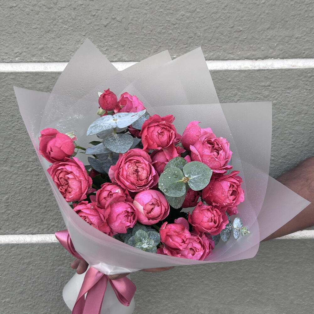 Eucalyptus - 3 шт. packaging - 1 шт. peony bush rose misty bubbles - 5 шт.