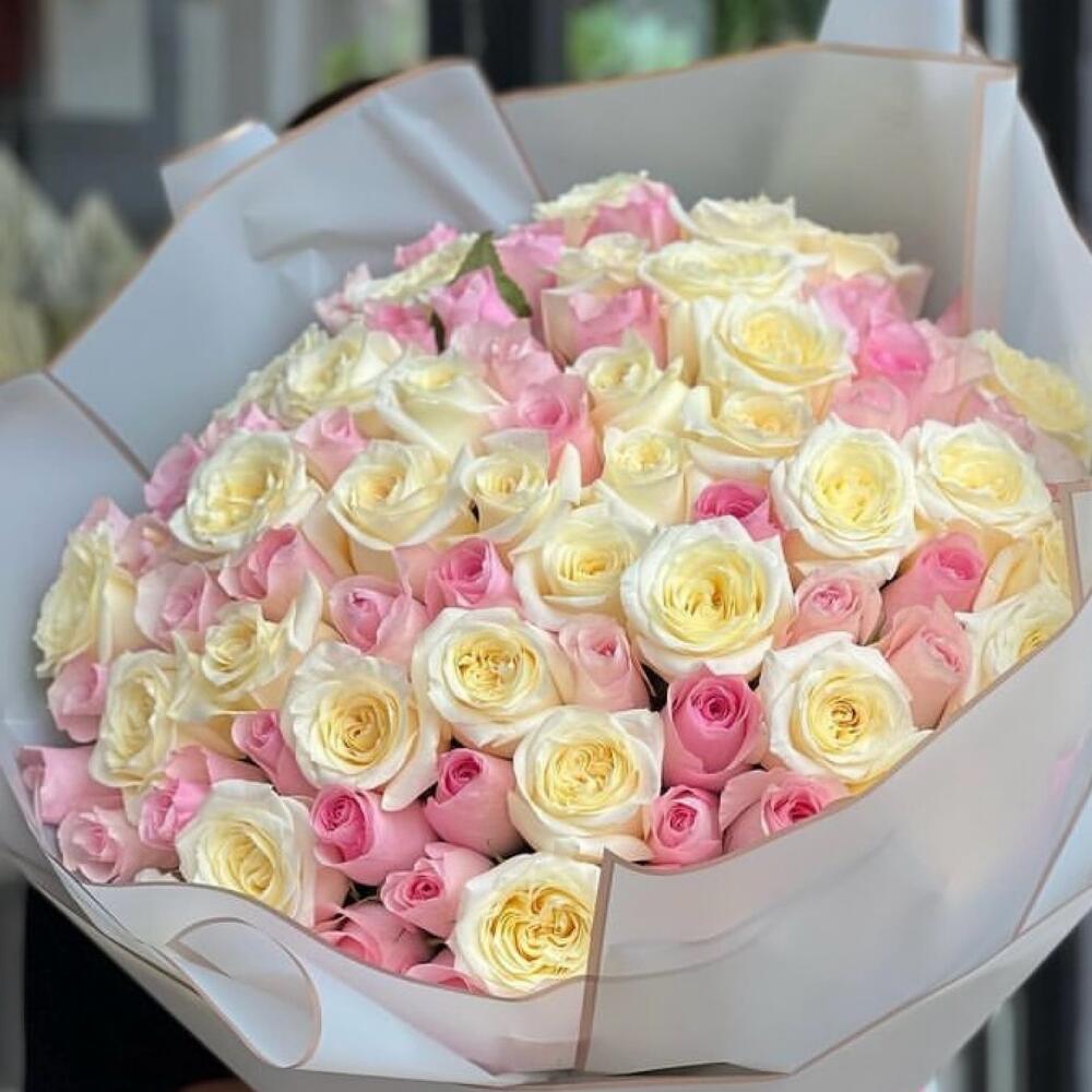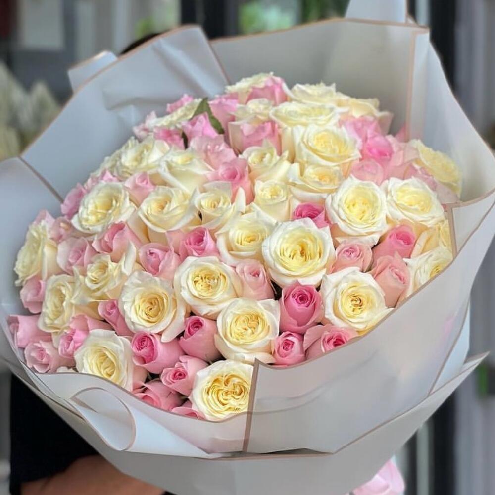 Bouquet of pink and white roses 101