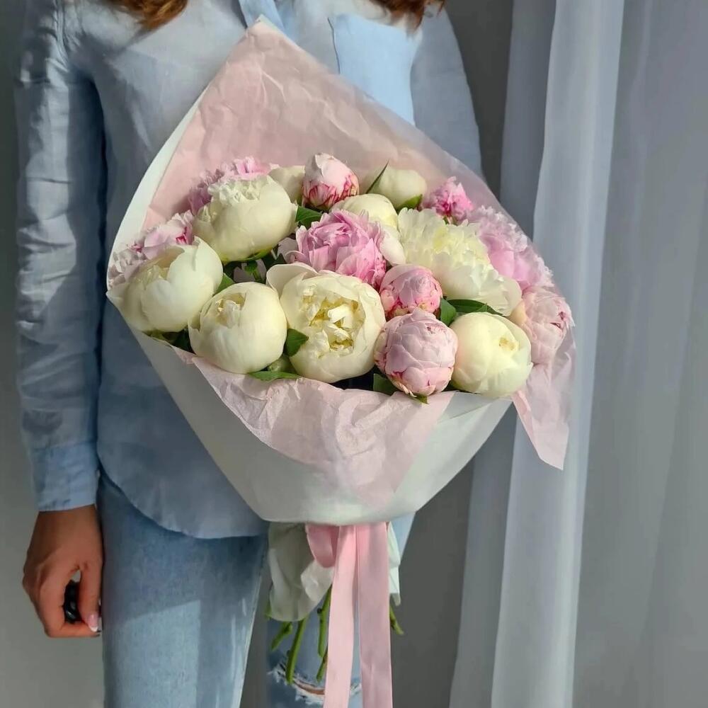 Satin ribbon - 2 шт. wrapping paper - 2 шт. card - 1 шт. good feelings - 100 шт. krizal - 1 шт. instruction - 1 шт. mixed peonies - 19 шт.