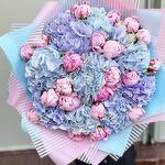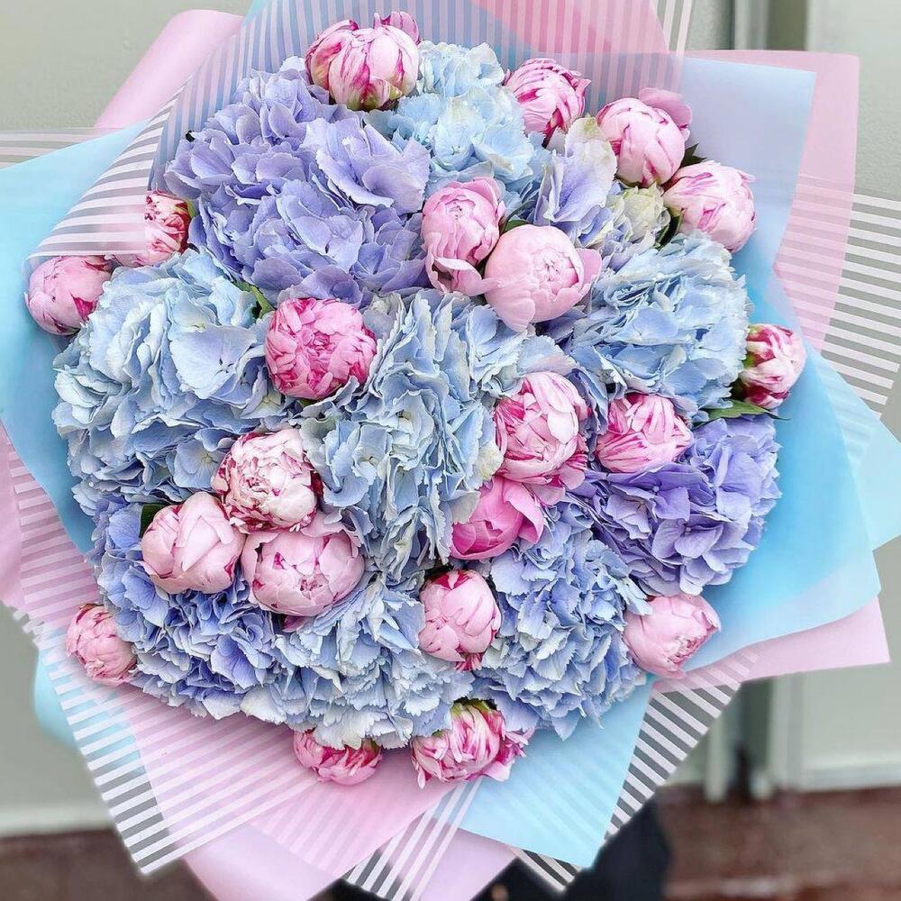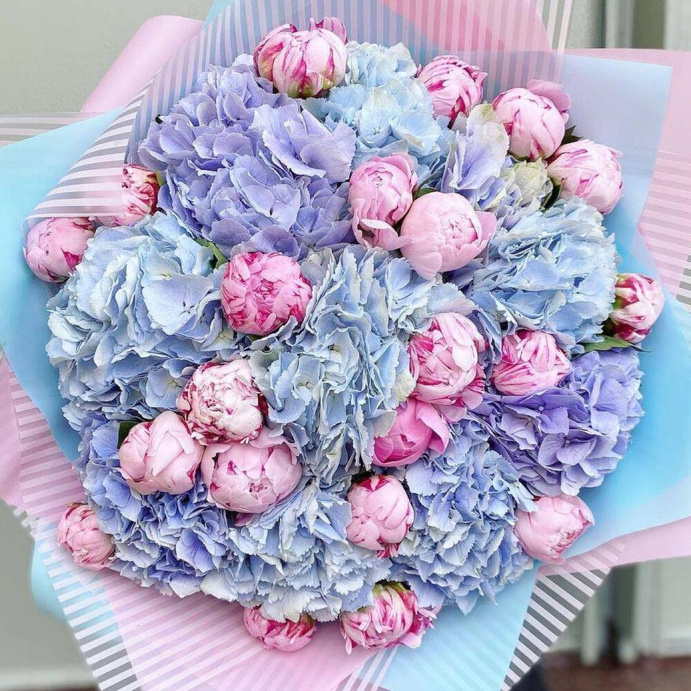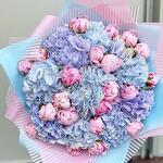 Satin ribbon - 2 шт. chrysal - 1 шт. card - 1 шт. designer wrapping - 2 шт. instruction - 1 шт. aqua box - 1 шт. carrying box - 1 шт. pink sarah bernard - 21 шт. assorted hydrangeas - 10 шт.