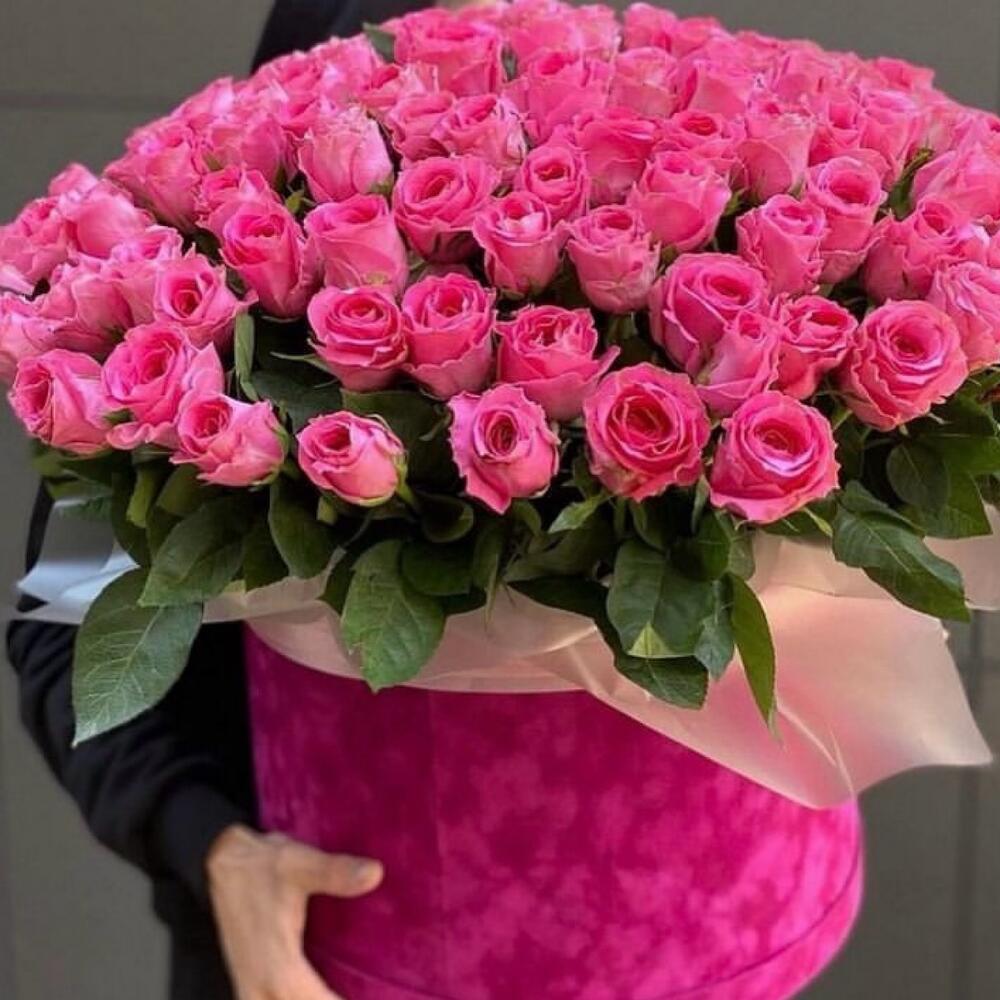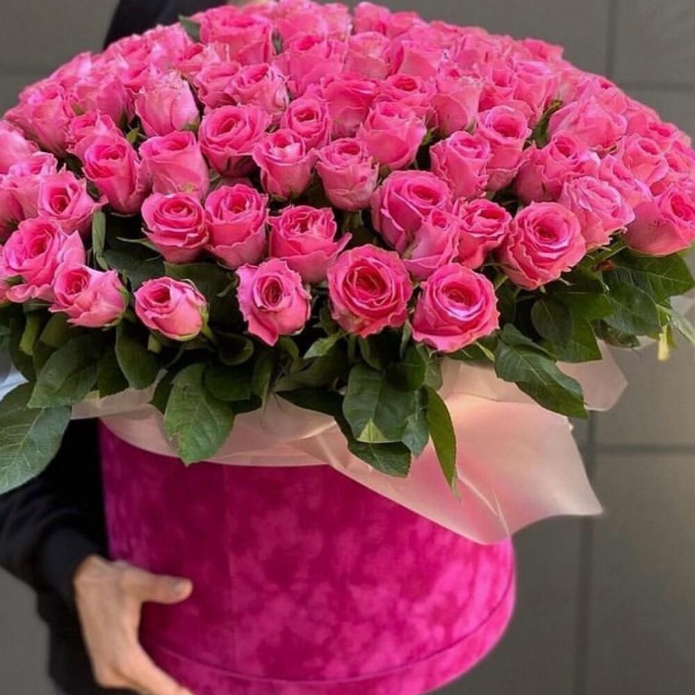 Bouquet of pink roses in hat box 101