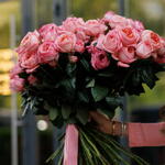 Прекрасный и щедрый букет из 50 бархатистых розовых роз в эффектном оттенке Rose-Aperol. Эта пышная композиция олицетворяет радость, восхищение и нежную привязанность — незабываемый подарок для праздника, идеально подходящий для дней рождения, Дня матери или для выражения благодарности.