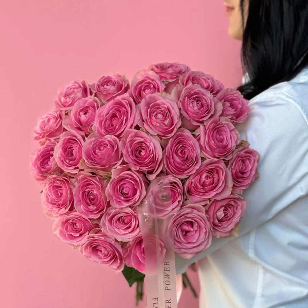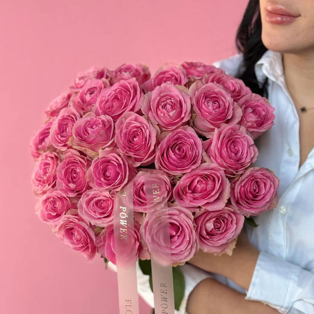 Этот сияющий букет розовых роз воплощает суть романтики и нежности. Нежные румяные оттенки символизируют восхищение и искреннюю привязанность. Пышный, роскошный и излучающий элегантность, он — идеальный подарок на годовщины, дни рождения или чтобы выразить чистую любовь.