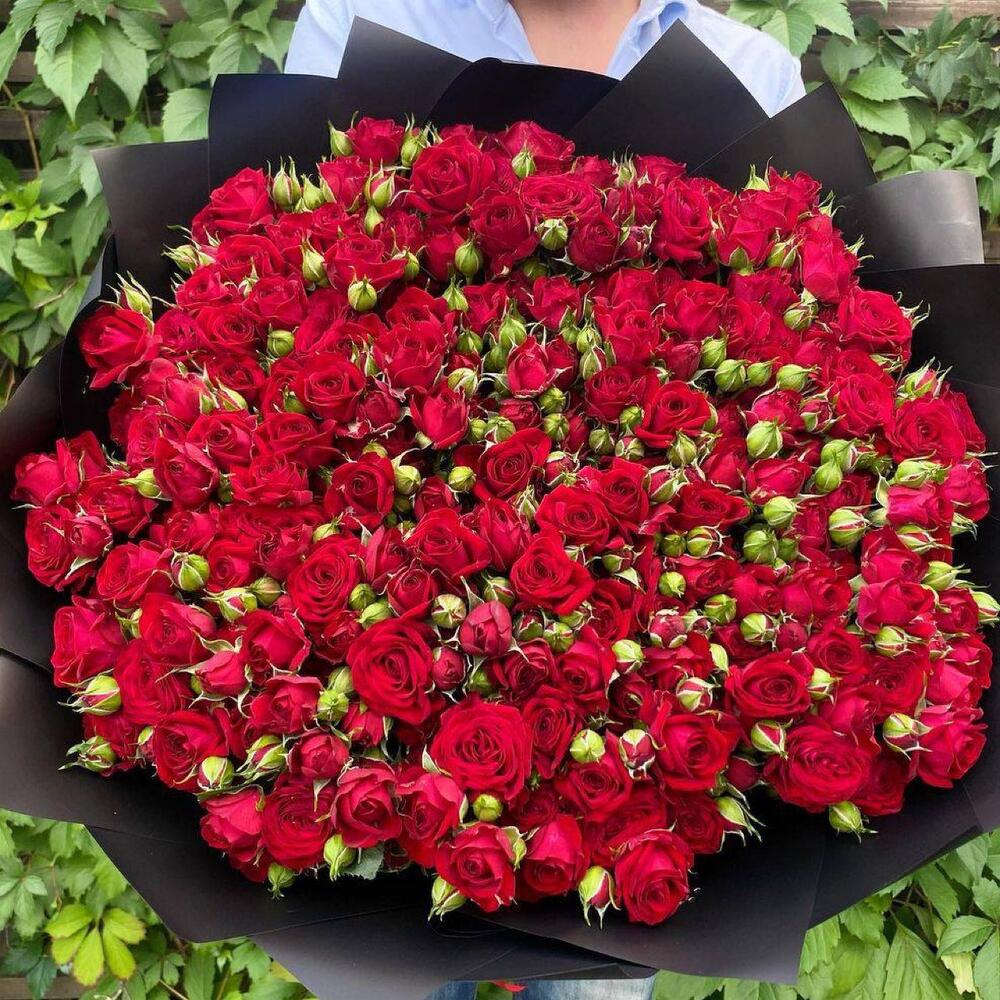 Satin ribbon - 2 шт. chrysal - 1 шт. card - 1 шт. designer wrapping - 2 шт. good feelings - 100 шт. instruction - 1 шт. carrying box - 1 шт. red bush rose - 151 шт.