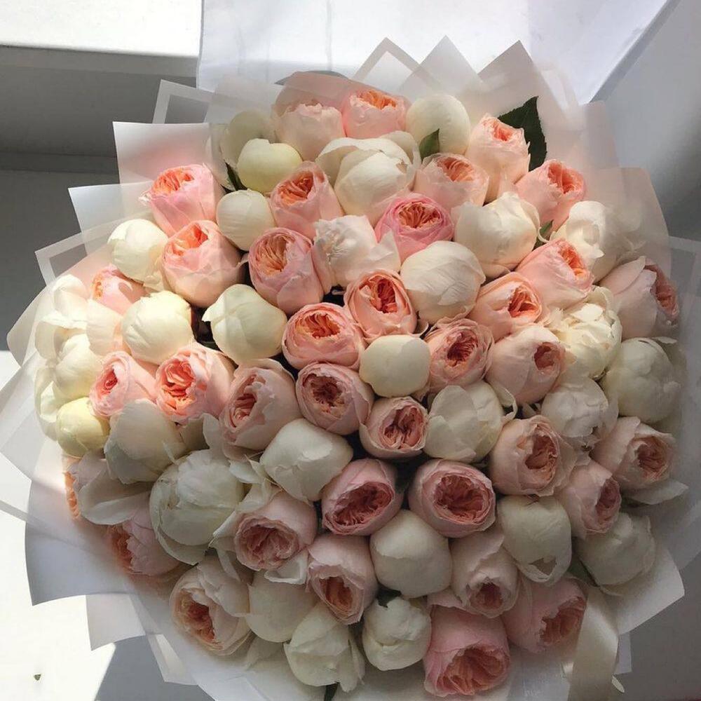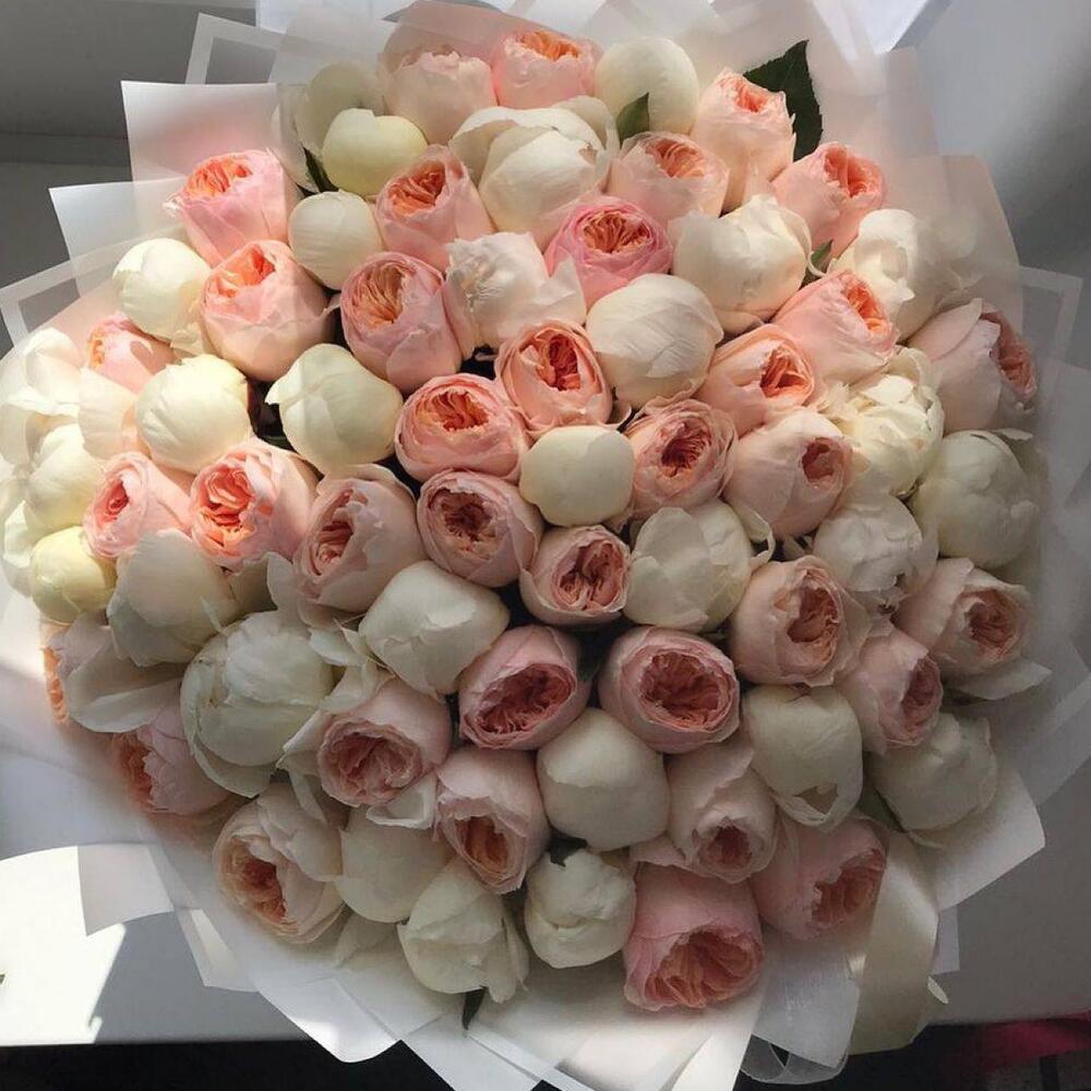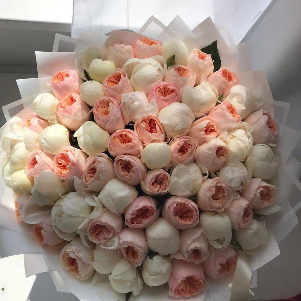 Bouquet of white peonies and peony roses juliet