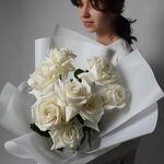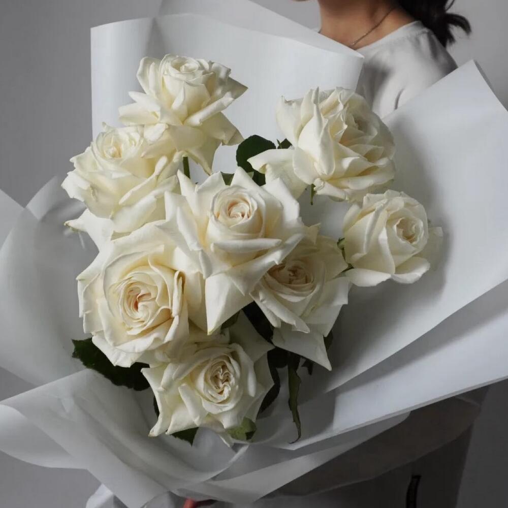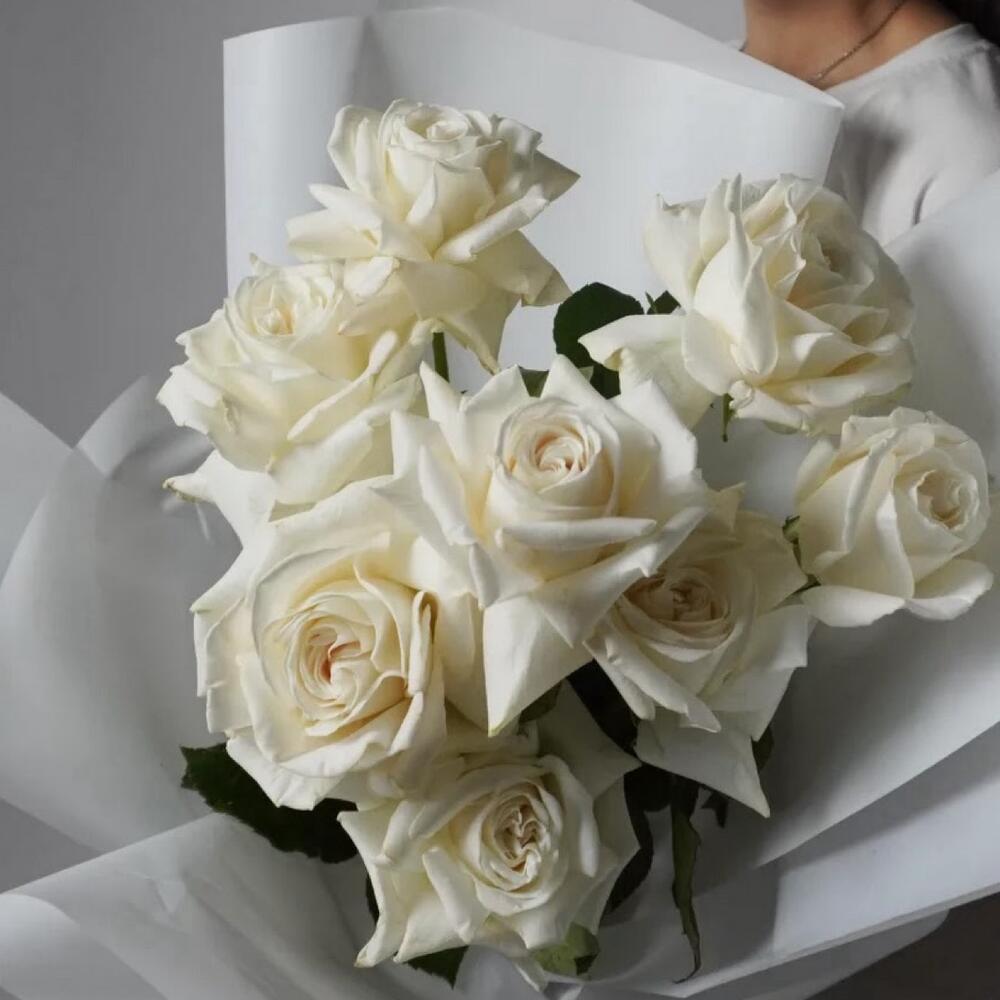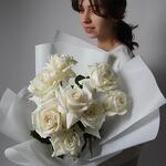 Satin ribbon - 2 шт. White rose - 8 шт. wrapping paper - 1 шт. card - 1 шт. good feelings - 100 шт. krizal - 1 шт. instruction - 1 шт.
