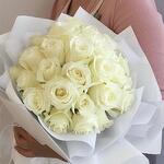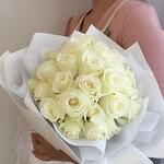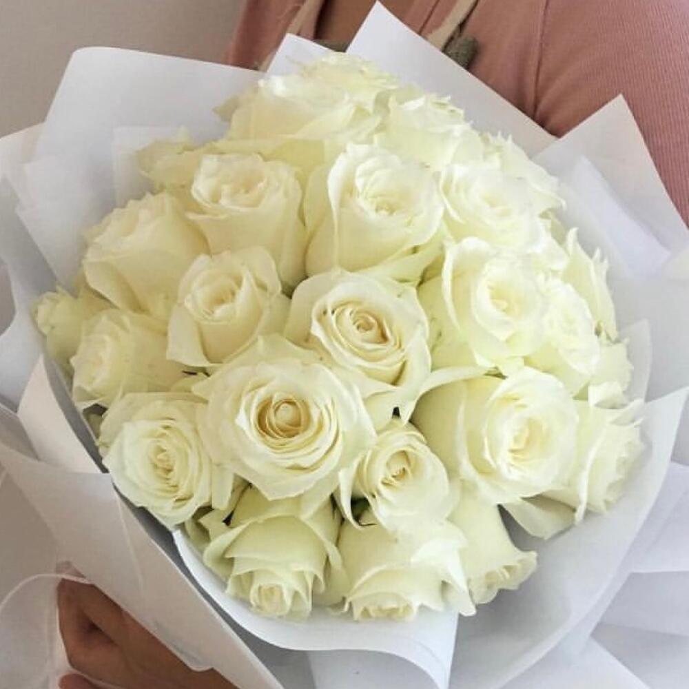 Satin ribbon - 2 шт. Box - 1 шт. White rose - 25 шт. wrapping paper - 1 шт. card - 1 шт. good feelings - 100 шт. krizal - 1 шт. instruction - 1 шт.