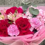 Eucalyptus - 1 шт. Hydrangea - 1 шт. Wrapping - 1 шт. carnation pink - 3 шт. pink alstroemeria - 2 шт. Роза София Лорен - 3 шт.