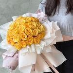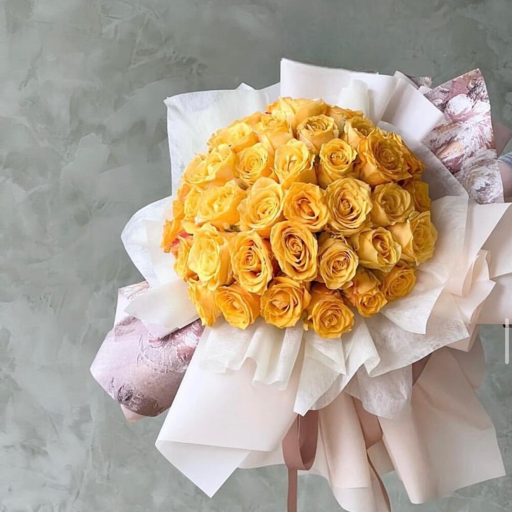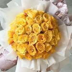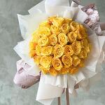 Satin ribbon - 2 шт. Box - 1 шт. Yellow rose - 51 шт. wrapping paper - 2 шт. card - 1 шт. krizal - 1 шт. instruction - 1 шт.