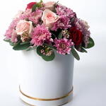 Коробка, полная свежайших цветов – восхитительное сочетание розовых роз, розовых хризантем и восковых цветов, которое добавит яркости и свежести любому торжеству! Вы будете в восторге от этого взрыва свежести и цветочной красоты.