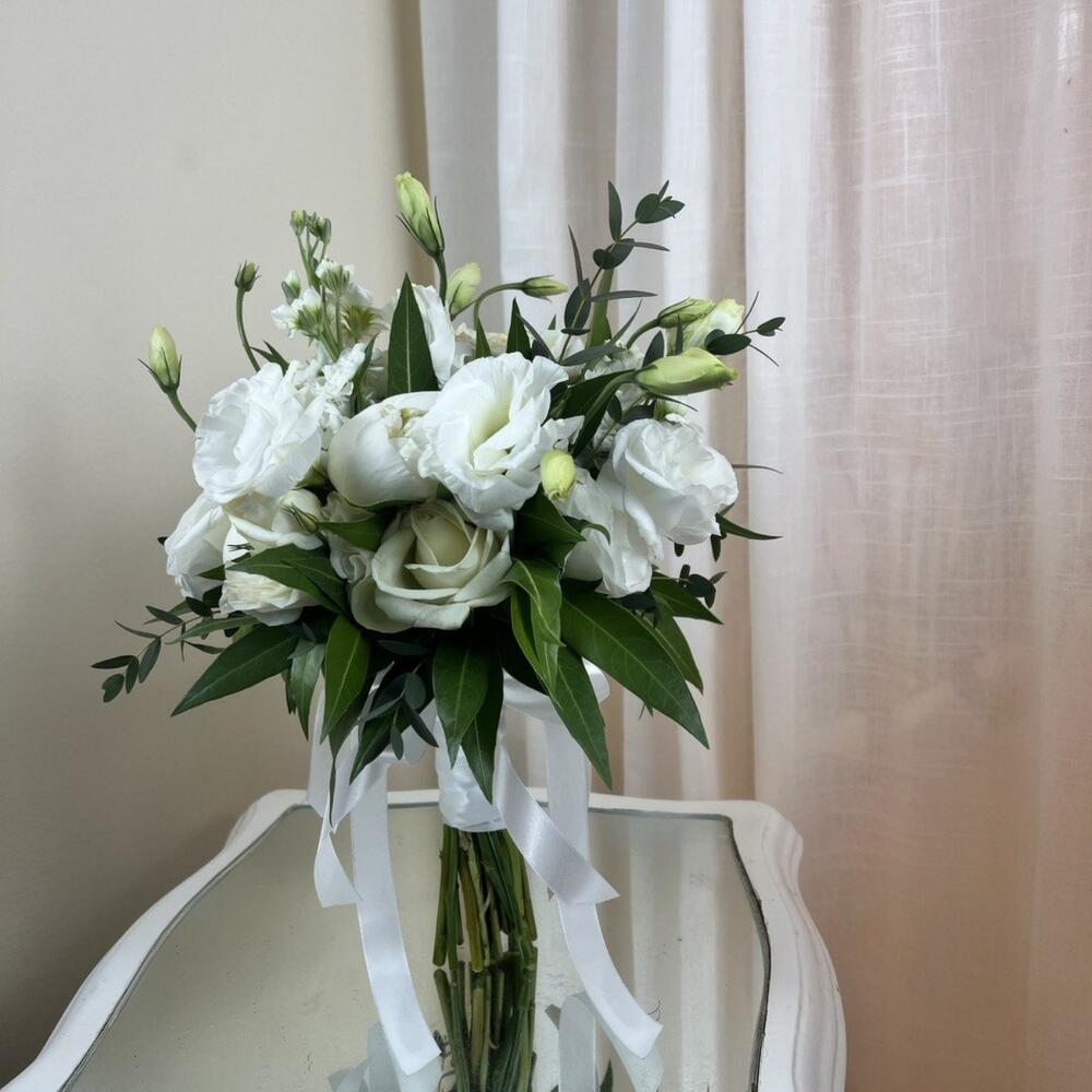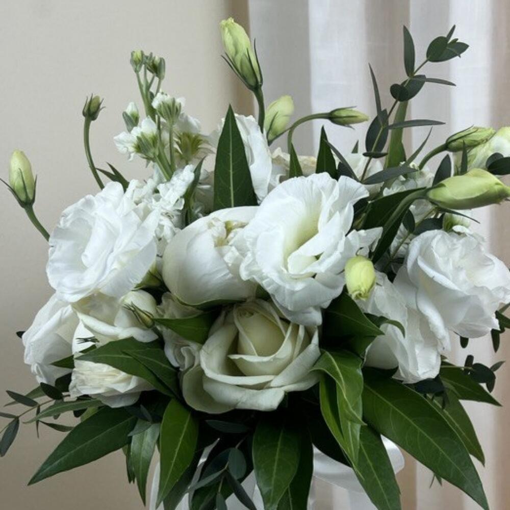 A beautiful, snow-white bouquet with peonies. Any bride will be happy on her happiest and most beautiful day.