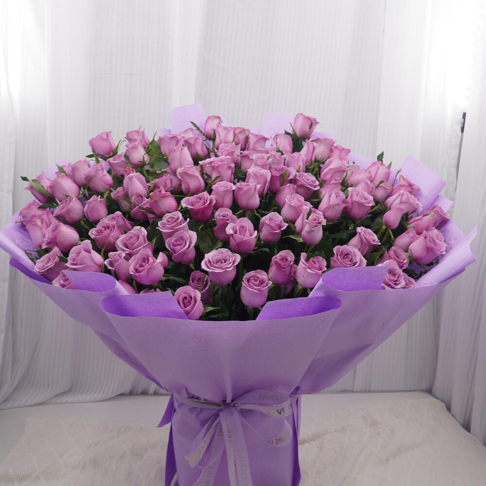 Откройте для себя незабываемое зрелище красоты с этим исключительным набором «Цветы в корзине». Композиция состоит из ошеломляющего количества 101 фиолетовых роз, специально подобранных для радостного открытия. Эти потрясающие цветы, изящно укрытые в мягкой корзине, излучают королевскую роскошь. Элегантная композиция гарантированно добавит нотку величия любому событию и идеально подойдет для создания эффектных центральных композиций, изысканных настольных композиций или в качестве захватывающего подарка вашим близким. Вложите средства в эту божественную цветочную симфонию, которая излучает очарование и изысканность. Впустите в свою жизнь букет счастья и вдохновения – по одной фиолетовой розе за раз.