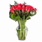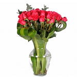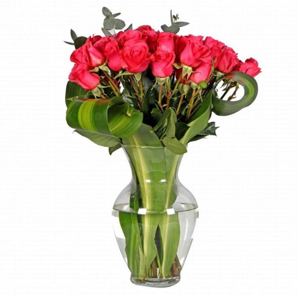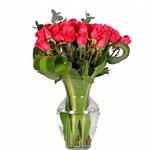 Ruscus - 10 шт. glass vase - 1 шт. красная роза (Кения) 40 см - 24 шт. массанжеана - 10 шт.