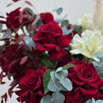 Eucalyptus - 12 шт. Basket - 1 шт. pampas grass - 6 шт. white roses - 8 шт. бордовые розы - 12 шт. сухая листва - 5 шт.