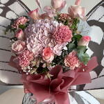 Pink rose - 8 шт. pink carnation - 5 шт. pink hydrangea - 1 шт. сухие наполнители - 2 шт. розовая альстромерия - 2 шт. крылья - 2 шт.
