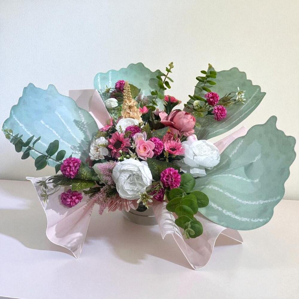 Окунитесь в мир волшебства с нашим букетом «Бабочка-фея» – причудливой цветочной композицией, созданной, чтобы пробудить очарование сказок. Этот очаровательный букет с восхитительным сочетанием розовых, фиолетовых и белых цветов, дополненный пышной зеленью, создаст очаровательное настроение и идеально подойдет для дня рождения, праздника или в качестве сказочного декоративного подарка. Вдохновленный красотой феи Динь-Динь, он воплощает в себе суть элегантности и чуда. Инструкция по уходу Храните букет в свежей чистой воде и подрезайте стебли по диагонали каждые два дня, чтобы он дольше оставался свежим. Держите букет вдали от прямых солнечных лучей, тепла и сквозняков, чтобы сохранить его красоту. Легкое опрыскивание цветов поможет им дольше сохранить яркость.