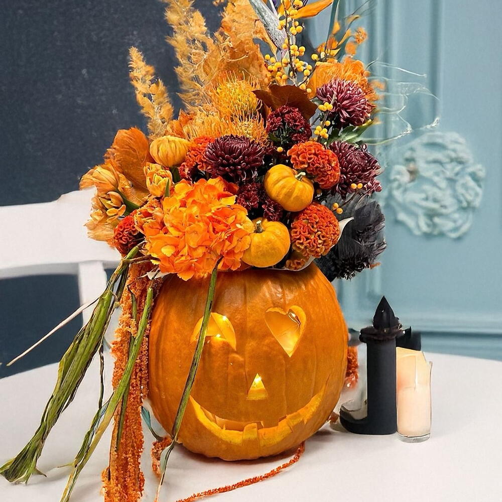 Эксклюзивная хэллоуинская тыквенная цветочная композиция для стола