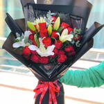 Red rose - 20 шт. Eucalyptus - 2 шт. lily white - 3 шт.