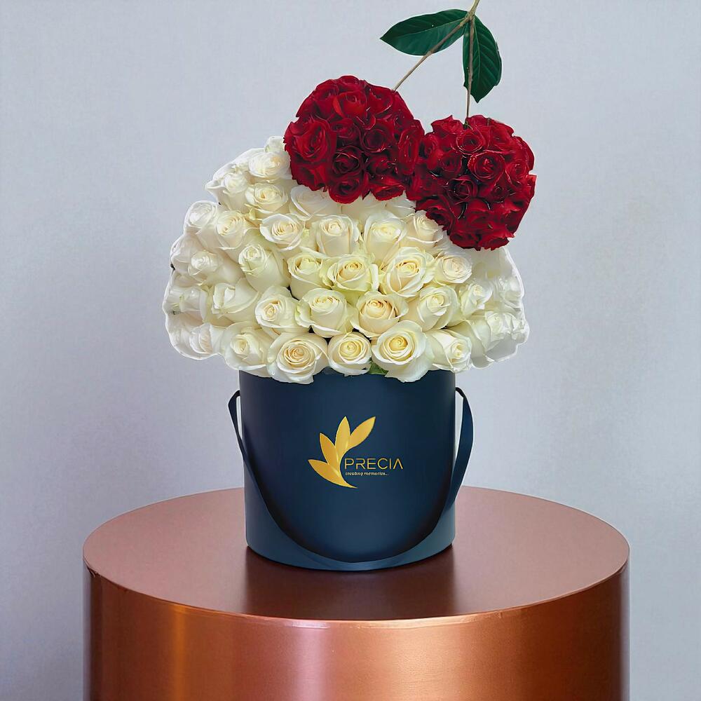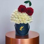 white roses - 70 шт. стебли красных кустовых роз - 10 шт.