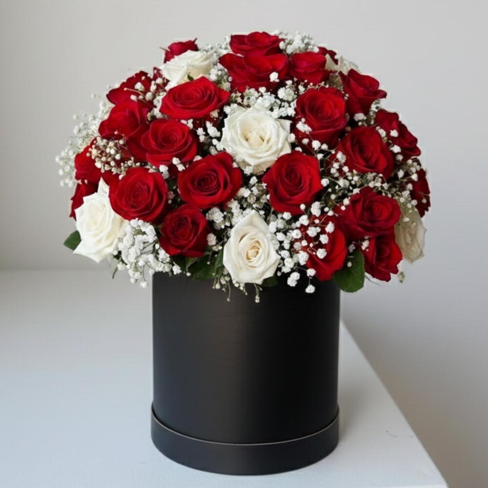 Коробка Любви 51 Красные Белые Розы XL