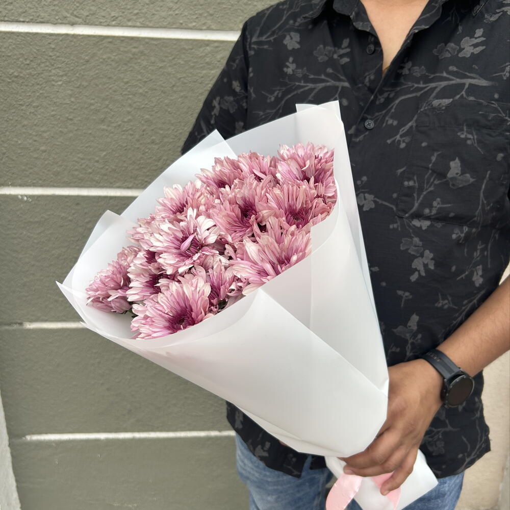 wrapping paper - 3 шт. хризантема кустовая розовая - 9 шт.