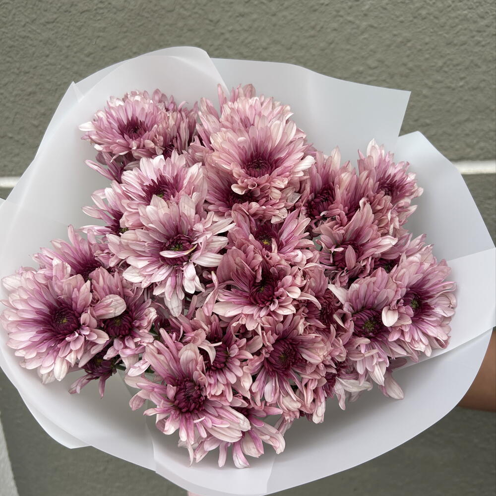 wrapping paper - 3 шт. хризантема кустовая розовая - 9 шт.