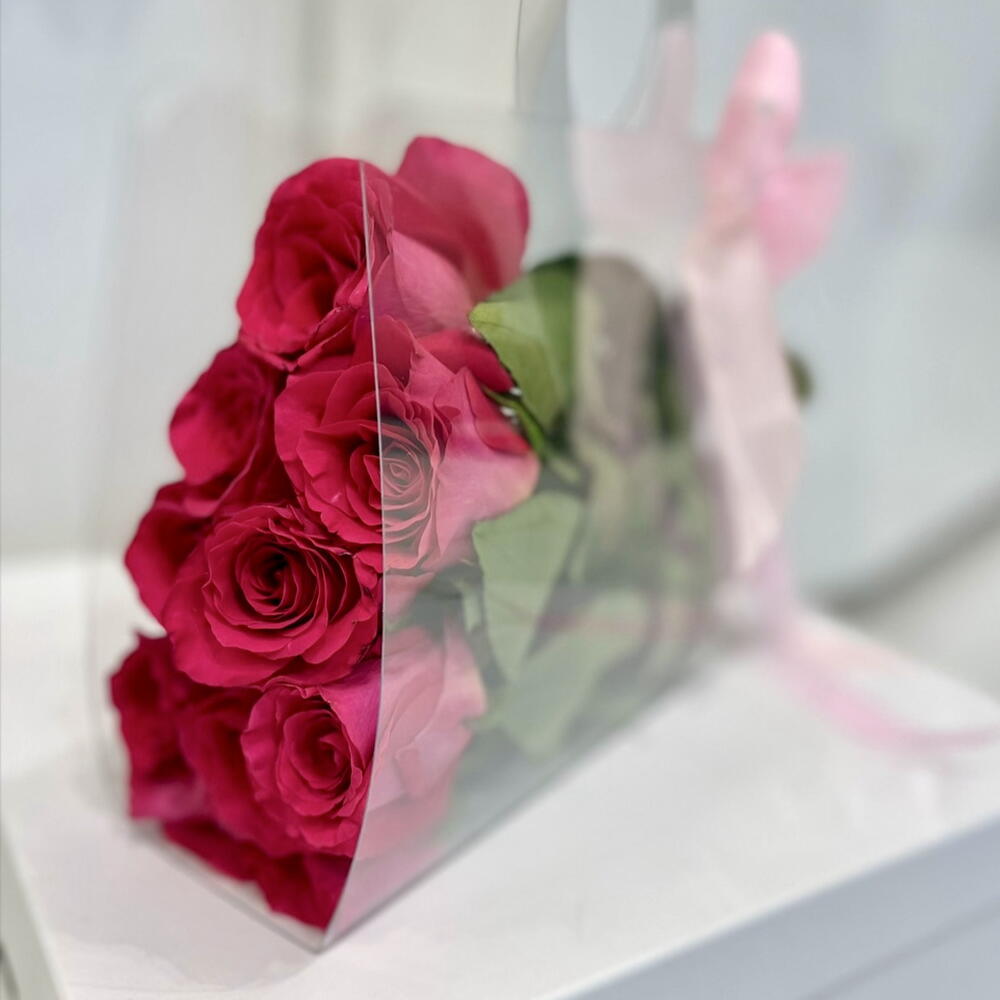 Прозрачный пакет розовых роз(10 роз)