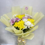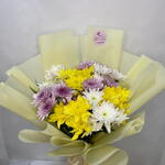 Красочное чувство! Букет из 12 розовых, белых и жёлтых хризантем в красивой упаковке. 4 розовых хризантемы. 4 жёлтых хризантемы. 4 белых хризантемы. Насладитесь красотой нашего букета, состоящего из 4 белых, 4 розовых и 4 жёлтых хризантем.