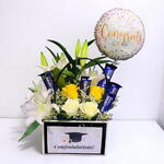 Congrats Celebration Box – Flowers, Chocolates Foil Balloon Combo