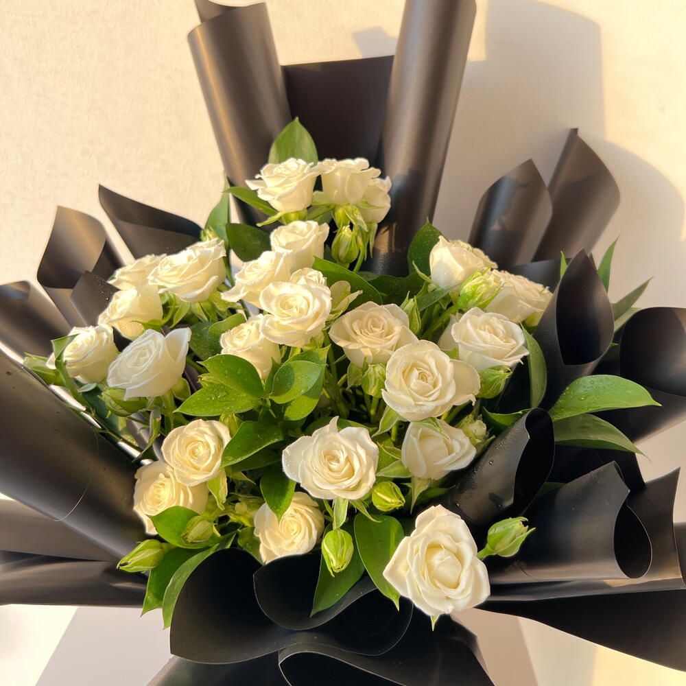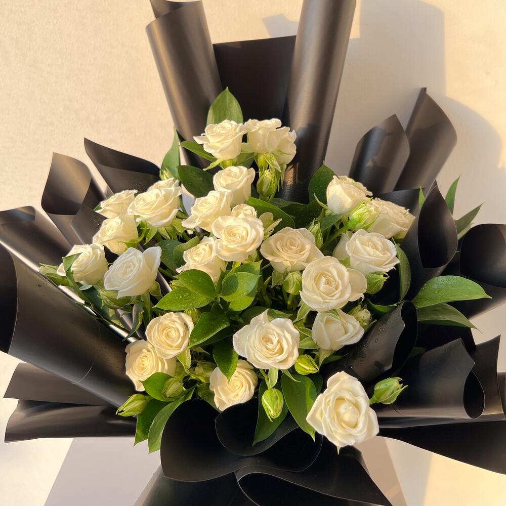 white spray rose - 10 шт. одна ветка рускуса - 8 шт.