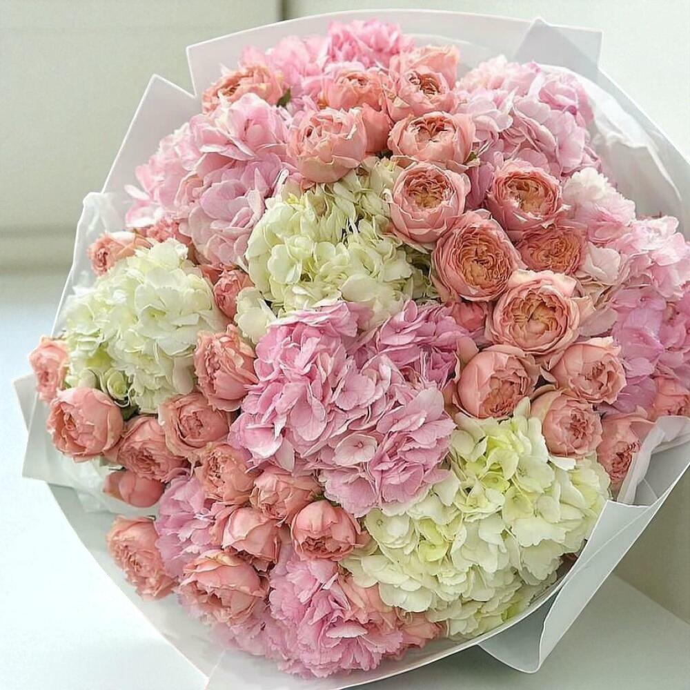 hydrangea pink - 7 шт. hydrangea white - 3 шт. джульетта персик - 15 шт.
