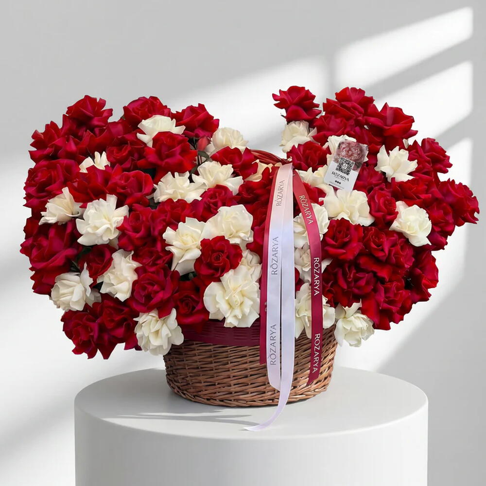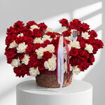 Богатая и элегантная композиция в корзине в классических красно-белых тонах, сочетающая бархатные розы с нежными гвоздиками для смелого, но сбалансированного образа. Романтичная, праздничная и привлекающая внимание, эта композиция идеально подходит для годовщин, Дня святого Валентина и значимых торжеств. • Пожалуйста, обратите внимание: поскольку цветы — натуральный продукт, реальные цвета могут незначительно отличаться от цифровых изображений из-за сезонного роста и условий освещения. Мы гарантируем, что общий стиль, премиальное качество, а также свежесть вашей композиции всегда будут сохранены.