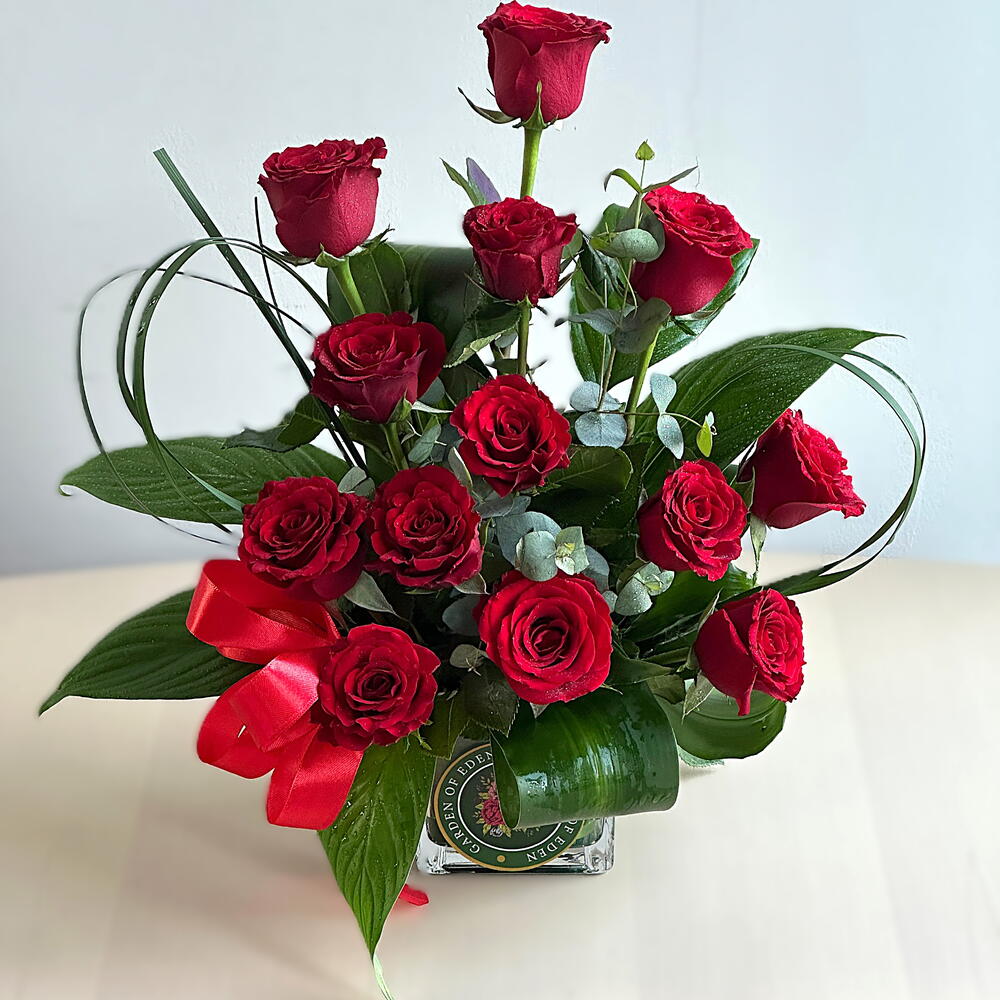 "Вечная страсть | 13 красных роз в вазе – классическая любовная композиция"