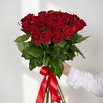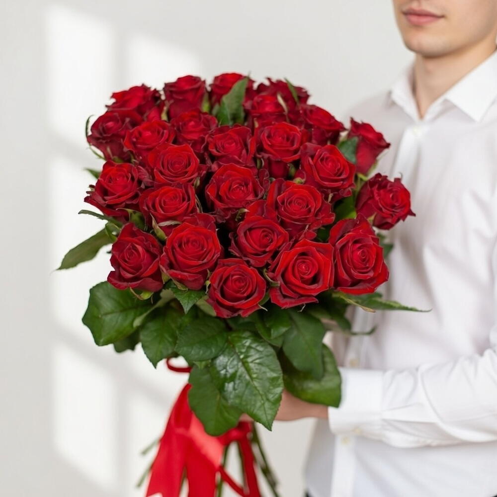 Классический монобукет, неподвластный времени, воплощает романтику и утонченную элегантность. Букет Crimson Classic состоит из двадцати одной высококачественной красной розы, расположенной в сбалансированной, пышной композиции, которая сразу же привлекает внимание. Каждый цветок демонстрирует бархатистые лепестки и глубокий насыщенный красный оттенок, символизируя страсть, восхищение и искреннюю привязанность. Несмотря на умеренный размер, букет обладает сильным визуальным присутствием и эмоциональной глубиной, что делает его идеальным выражением сердечных чувств. Выполненный в чистом, классическом стиле, подчеркивающем естественную красоту роз, этот букет идеально подходит для романтических жестов, годовщин, дней рождения и важных сюрпризов. Составленный с заботой, чтобы обеспечить свежесть и превосходный внешний вид, этот букет остается настоящим шедевром флористического искусства.