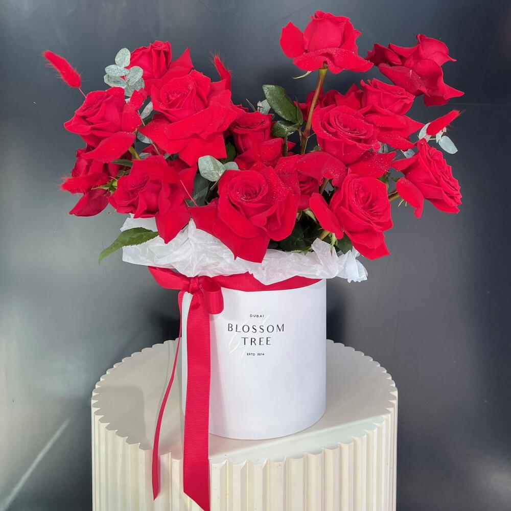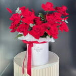 Experience the romance and grandeur with this stunning Florists Special arrangement. Boasting an ensemble of 15 passionate red roses, accented beautifully by the freshness of 3 tastefully scattered eucalyptus stems. This exquisite symphony is nestled lovingly in a chic box, accompanied by a charming teddy bear symbolizing warmth and affection. The arrangement is polished off with 3 playful bunny ears, adding a touch of whimsical intrigue. This bouquet is not just a gift, but a memorable experience.