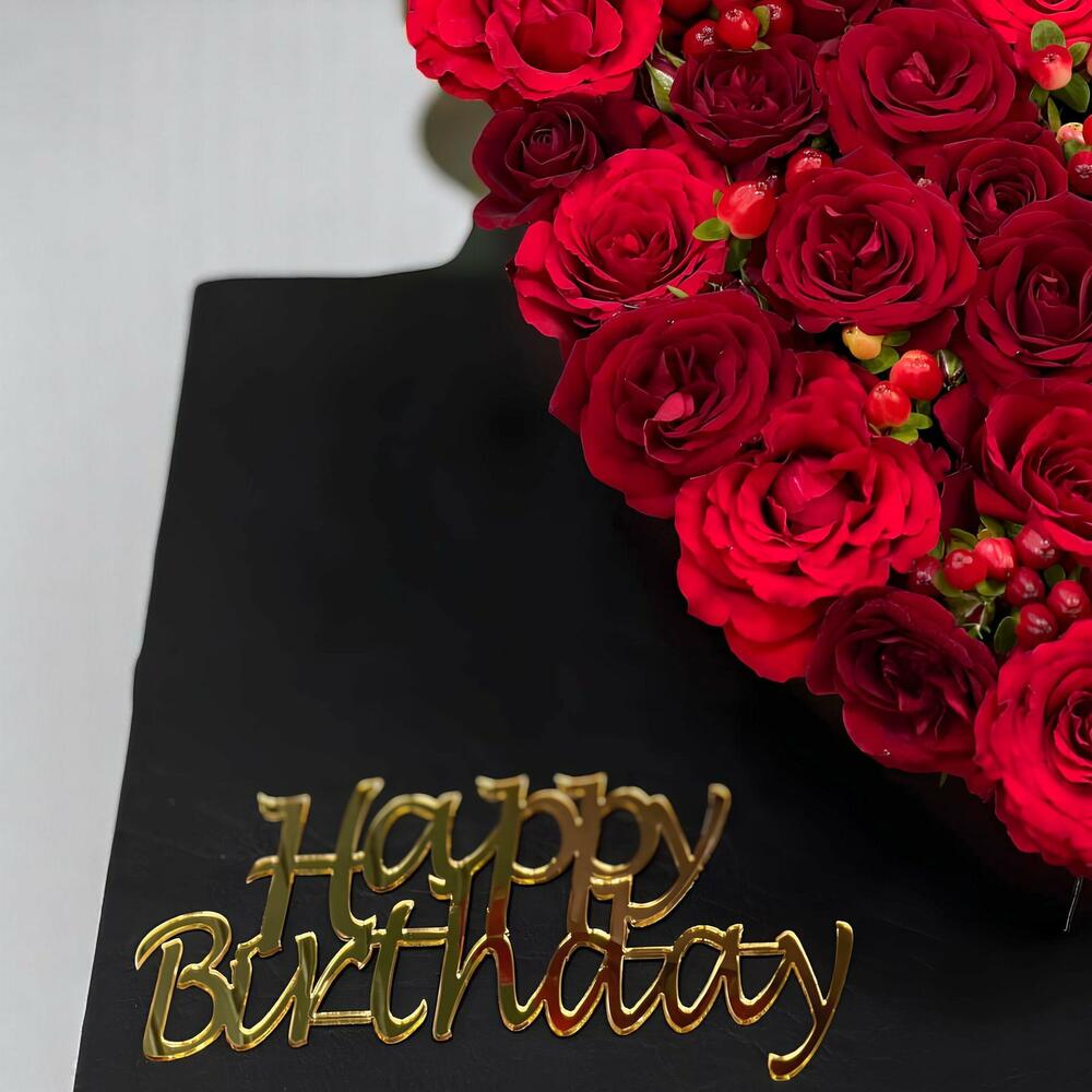 red hypericum - 5 шт. red roses - 20 шт. красные мини-розы - 5 шт.