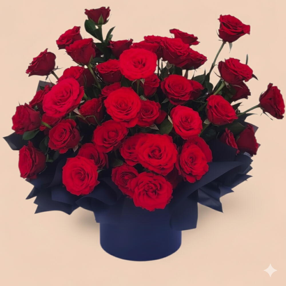 Роскошная композиция из премиальных красных роз, символизирующая глубокую любовь и вечную романтику. Идеально подходит для Дня святого Валентина, годовщин или выражения искренних чувств с элегантностью и грацией. 🌹❤️