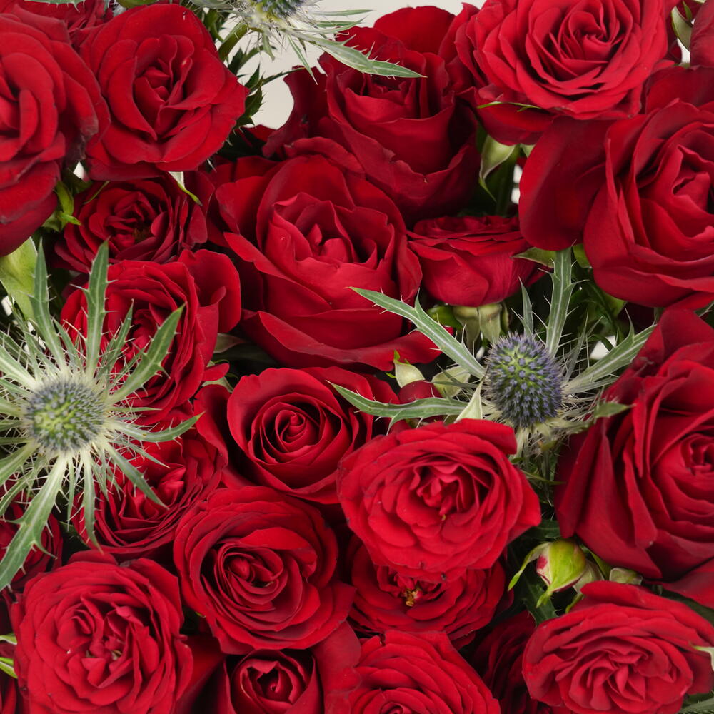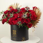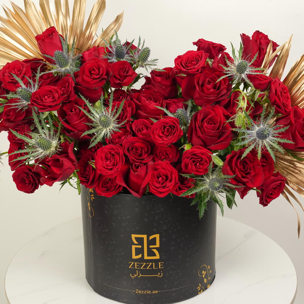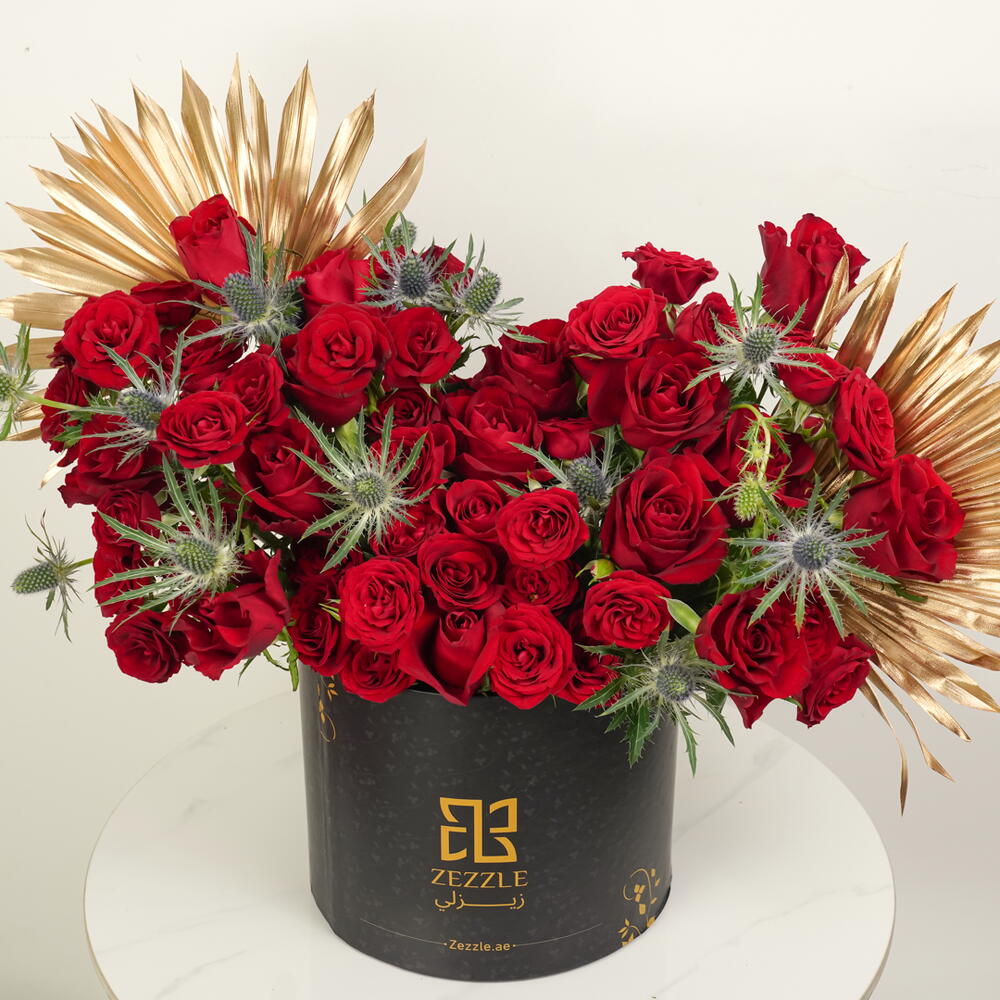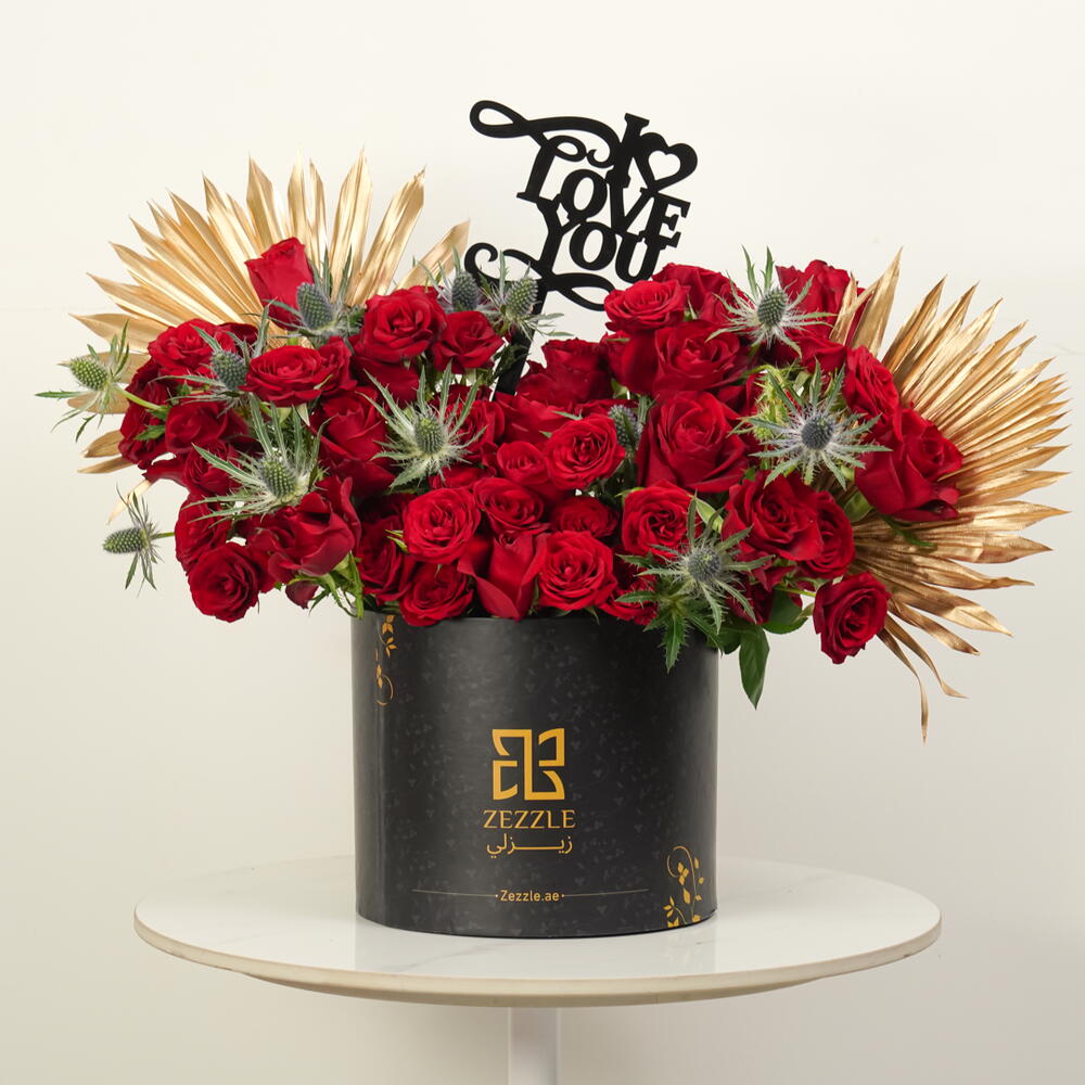 Эта притягательная цветочная композиция сияет в элегантно оформленной zezzle черной круглой коробке. Наполненная пятьюдесятью ярко-красными розами, эта демонстрация привязанности увенчана нежным топпером с надписью Love You. В дополнение к красным розам композиция содержит два золотых пальмовых листа, придавая дополнительную нотку изысканности. Потрясающий выбор для выражения чувств от всей души. Не просто говорите им о своих чувствах — покажите это с помощью этой захватывающей цветочной коробки.