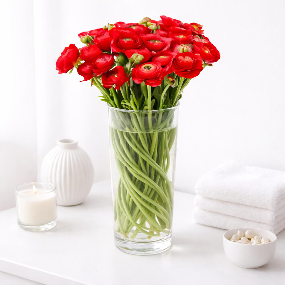red ranunculus - 20 шт. clear glass vase - 1 шт.