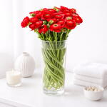 20 Red Ranunculus Clear Glass Vase – 12x20cms