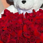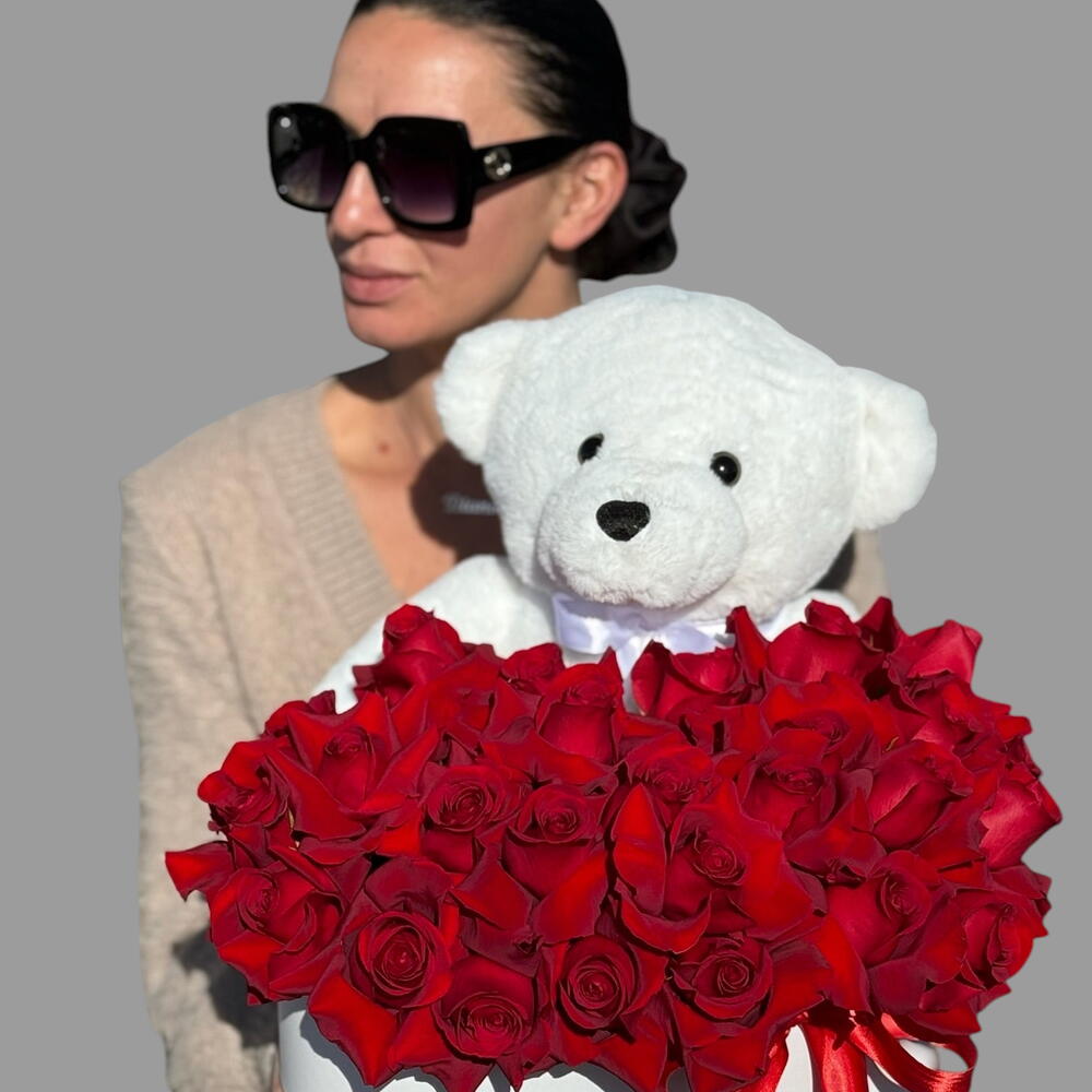 Teddy bear - 1 шт. heart box - 1 шт. красные классические розы - 25 шт.