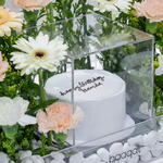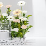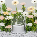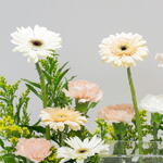 carnation white - 4 шт. гермини белая - 4 шт. персиковая гвоздика - 7 шт. премиальный кремовый торт - 1 шт. гермини бежевый - 3 шт.