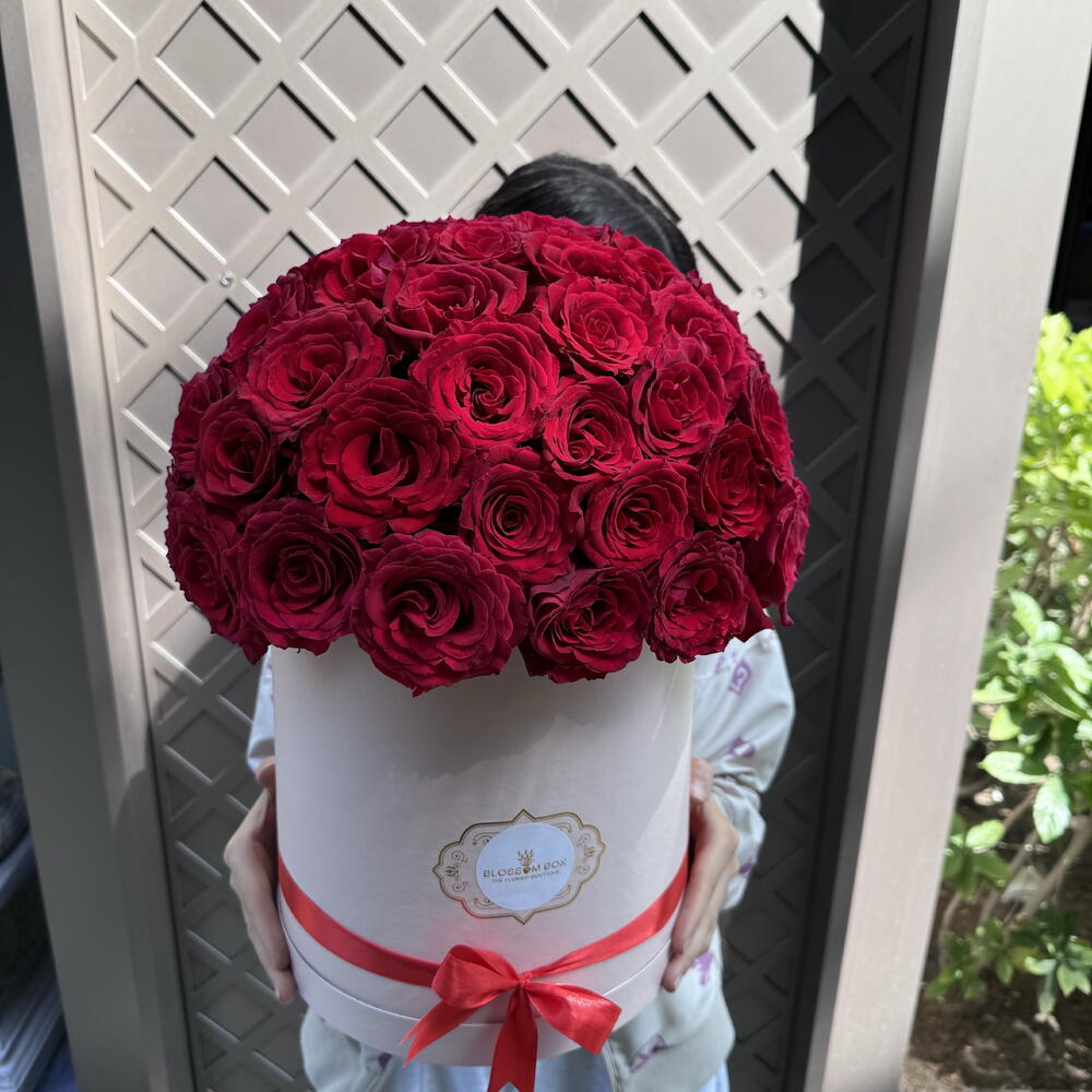 Immerse yourself in the lush abundance of 60 alluring red roses, meticulously selected and gingerly nestled in an elegant box. This indulgent floral arrangement, an epitome of love and appreciation, promises to exude beauty and fragrance that’s captivatingly overpowering. Each petal tells a story, each bud is a promise - a spectacular symbol of everlasting affection. The perfect gift for expressing your emotions to a loved one, on any special occasion or just as a mesmerizing centerpiece.