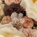 Box - 1 шт. Alstroemeria - 3 шт. skimmia - 2 шт. garden rose - 8 шт. eucalyptus leaves - 1 шт. piony rose - 6 шт.
