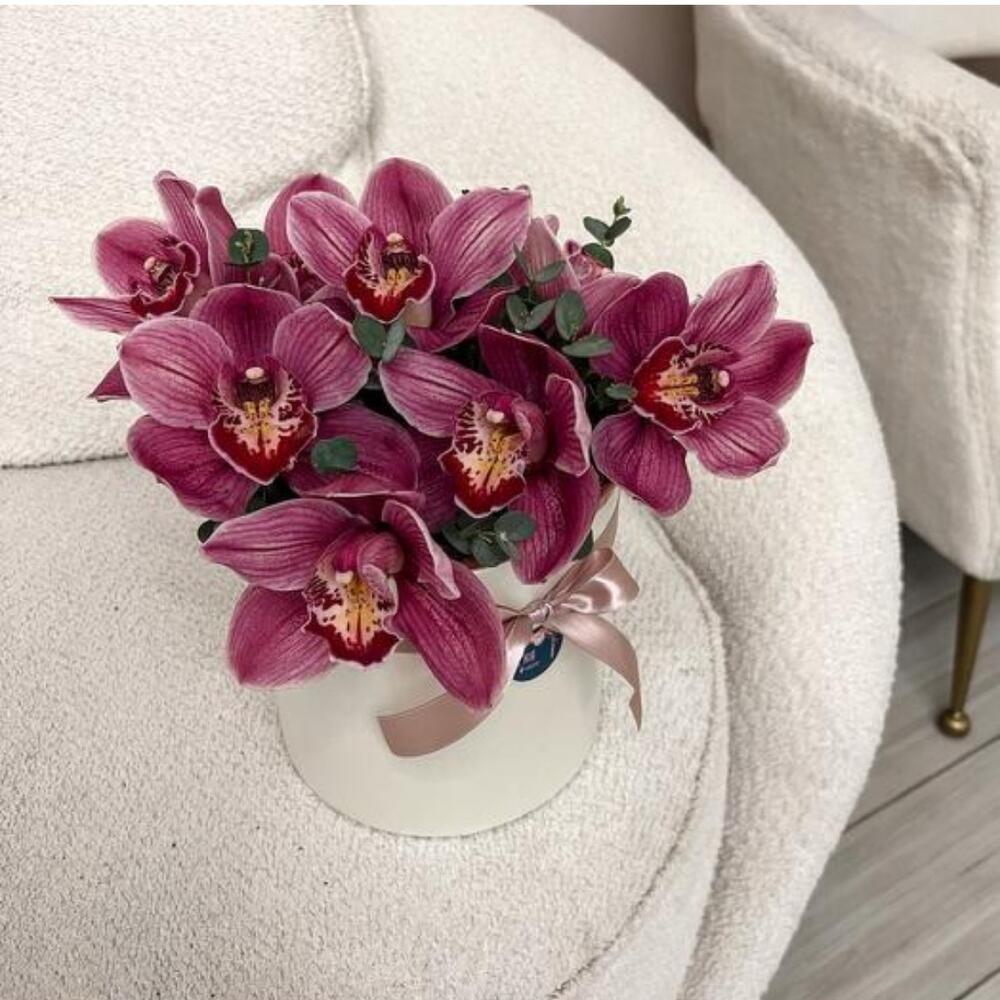 Box - 1 шт. eucalyptus leaves - 3 шт. розовый цимбидиум - 12 шт.
