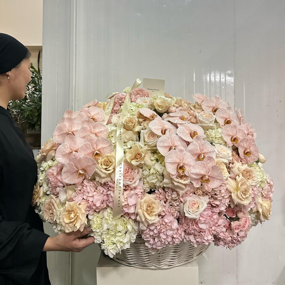 Корзина XXL розовых цветов - нежный персиковый с орхидеями