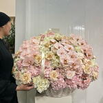 Погрузитесь в яркую элегантность наших цветов в корзине. Пусть букет из 50 зыбучих роз очарует вас своей изысканной красотой и цветом. Нежные 30 белых и 50 розовых гортензий придают композиции объём и изысканность. Десять эвкалиптов, бережно вплетенных в букет, придают ему неповторимую текстуру и землистый оттенок. Роскошь букета дополняют 50 роскошных кустовых роз, чья изысканность идеально контрастирует с утончённым очарованием 25 белых роз сорта «Охара». Три изысканные персиковые орхидеи, придающие букету чарующий шарм, дополняют его. Эта великолепная корзина — не просто подарок, а волшебный букет, полный свежести и гармоничных оттенков.