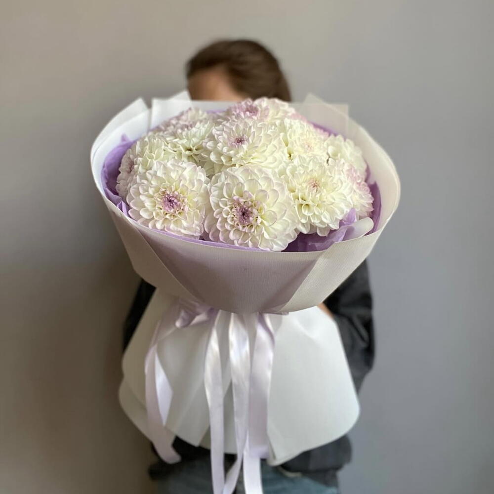 Восторг — букет белых георгинов — подарок на годовщину рождения для неё